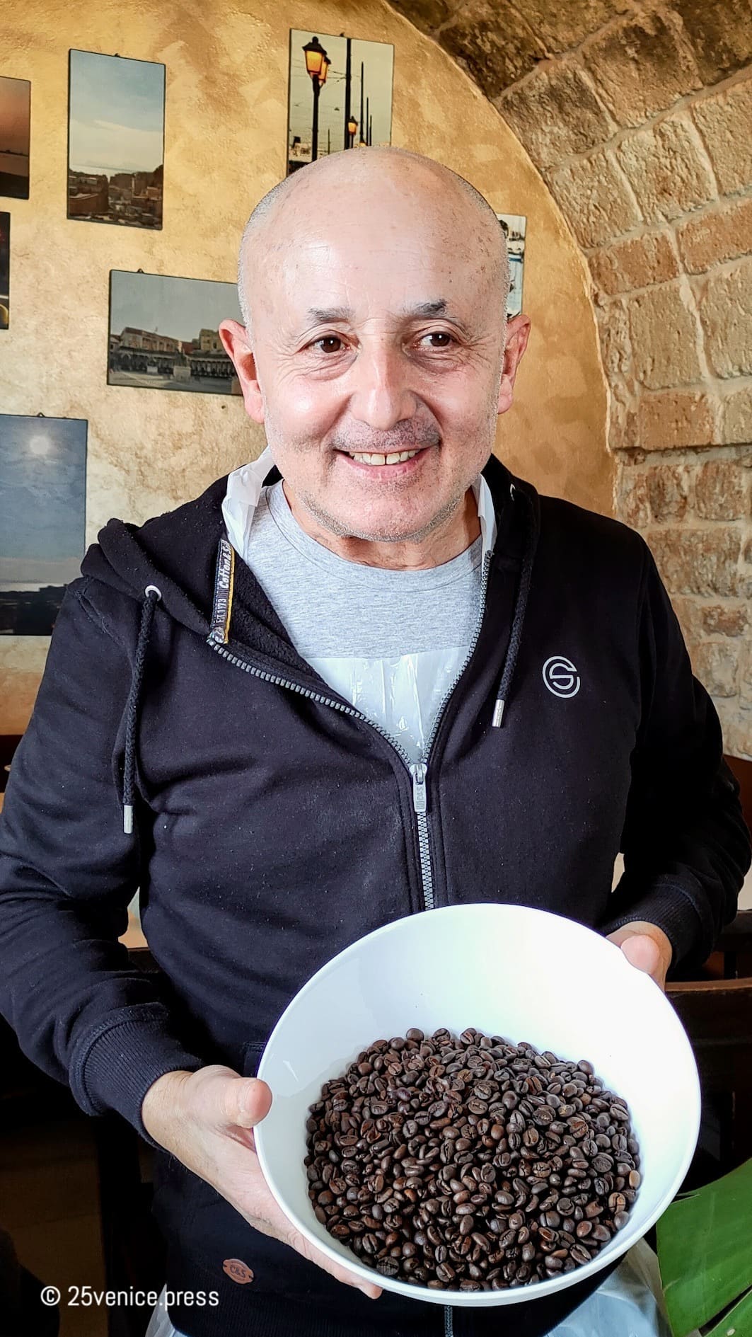 In Sergio affiorano i ricordi dell’indimenticabile Carnevale veneziano. Era il 1982, due culture si incontrarono, fu fantasia e spontaneità. Il giovane napoletano sbarcò in laguna con una compagnia di teatranti che affittò un appartamento nel cuore della città, calle Larga XXII marzo nel sestiere di San Marco. Con la loro carica di simpatia contagiarono i veneziani. In casa c’era chi cuciva, stirava, recitava, attaccava bottoni, indossava costumi. Lui faceva lo chef. In strada tutti cantavano e danzavano. “Era come se Napoli si fosse trasferita a Venezia. Ho ricordi bellissimi”. Per colazione niente caffè e cornetto ma un’ombra e un cicchetto. Sergio ha un segreto che svela: “Pizza e caffè risentono dell’umidità. Per questo preparo la pasta della pizza e macino il caffè considerando le condizioni meteorologiche”.