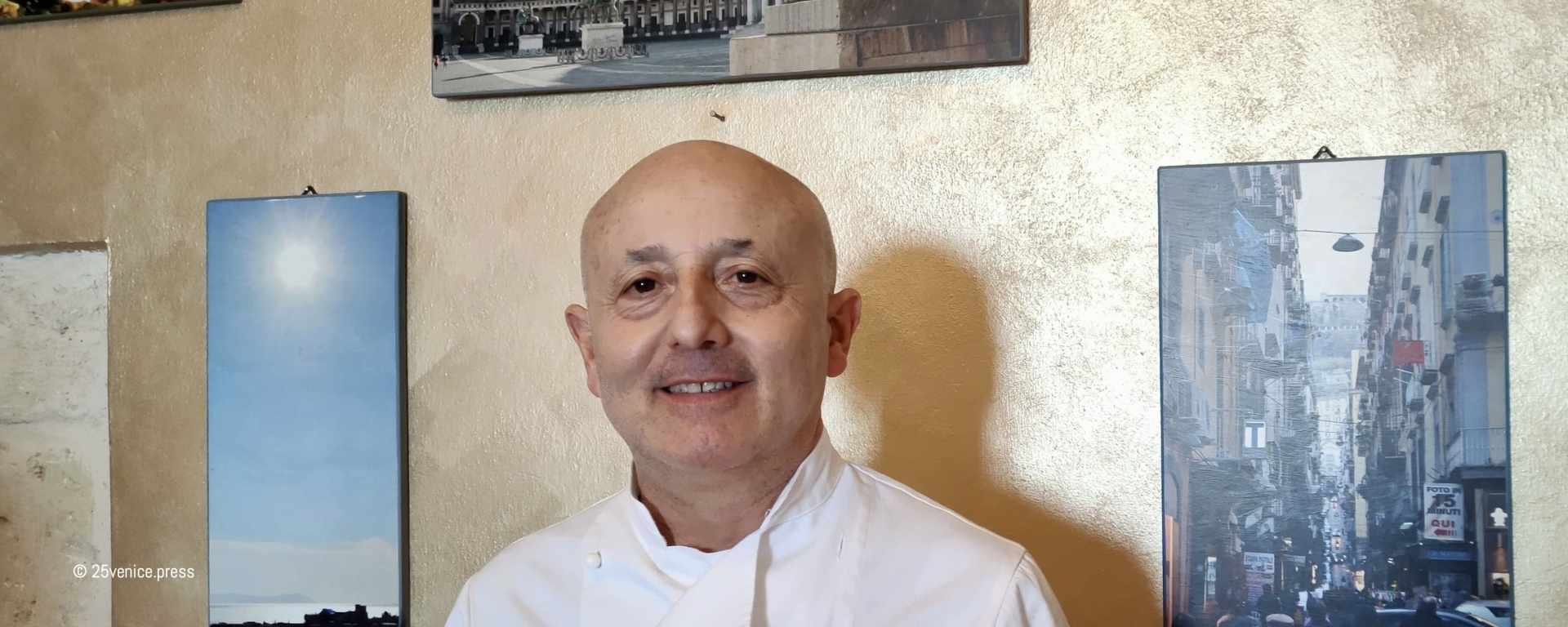 Sergio, napoletano doc, 60 anni esatti, una vita a far pizze e piatti della cucina partenopea. A vent’anni partecipa al Carnevale “Napoli a Venezia”, s’innamora della Serenissima e non la dimentica più.