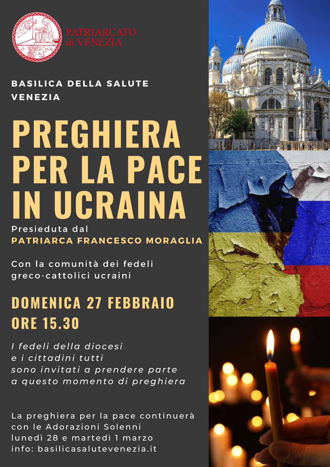 Domenica 27 febbraio, in Basilica della Salute alle 15,30, il Patriarca Moraglia ha pregato con i fedeli della comunità ucraina greco-cattolica. Lunedì 28 febbraio è stato fissato un incontro in Caritas con la Comunità ucraina per coordinare gli aiuti.