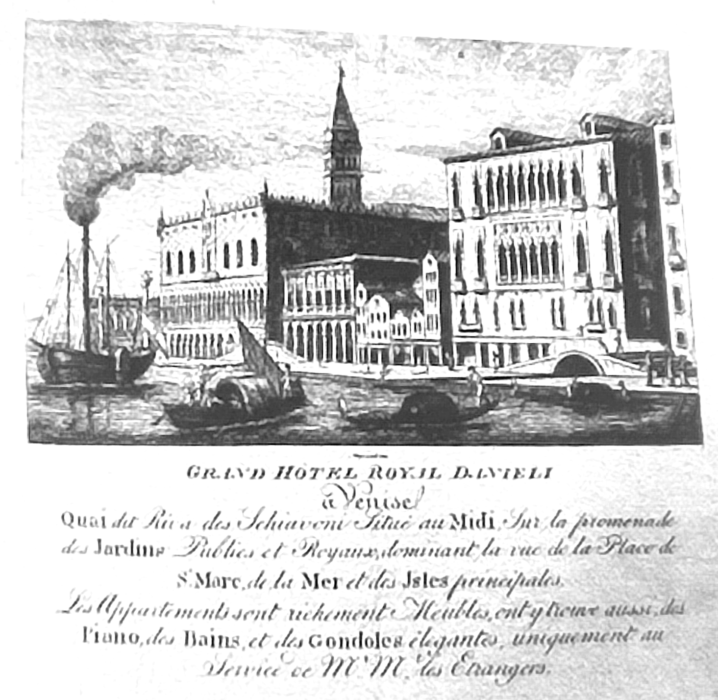 Tre fonti – il Giornale del Regno delle Due Sicilie, il Diario di Roma, il Messaggiere Tirolese – si rimpallano la notizia che il 24 ottobre 1822 il re di Prussia fu ospite al Danieli che si chiamerà Grand Hotel Royal Danieli e diventerà l’hotel più importante d’Europa, ossia di tutto il mondo.