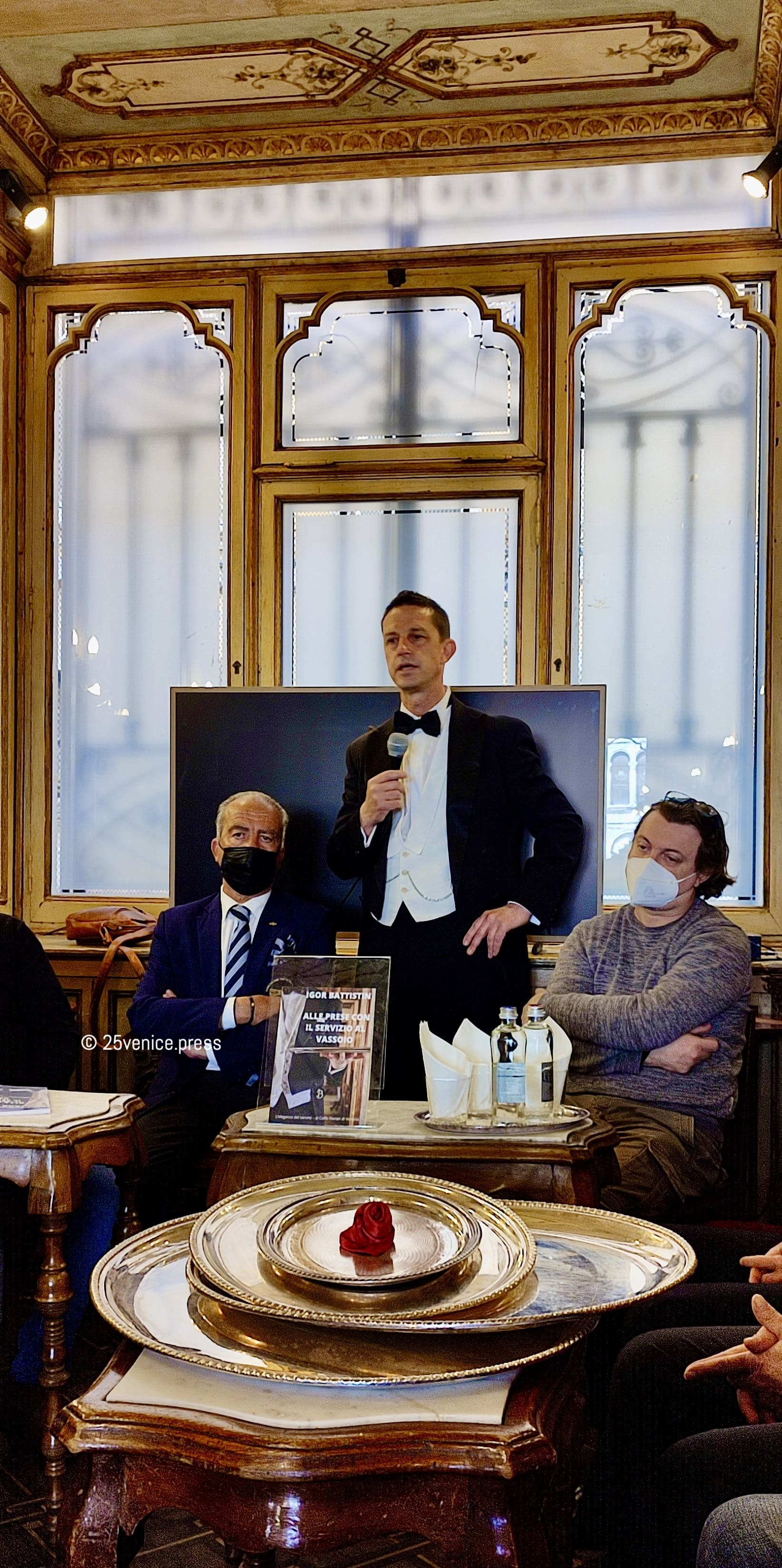 È un po’ libro e tanto manuale “Alle prese con il servizio al vassoio”. L’ha scritto Igor Battistin per insegnare ai ragazzi di oggi e di domani, soprattutto a quelli degli istituti alberghieri, la professionalità, l’eleganza, la tecnica, l’arte, la fantasia, il galateo. “Regalate sorrisi, rispettate le precedenze di servizio: bambino, donna, uomo”, suggerisce garbato ed emozionato Igor, il maÎtre con record mondiali che dal 1997 gestisce al Caffè Florian una brigata di trenta collaboratori con la responsabilità del reparto Sala.