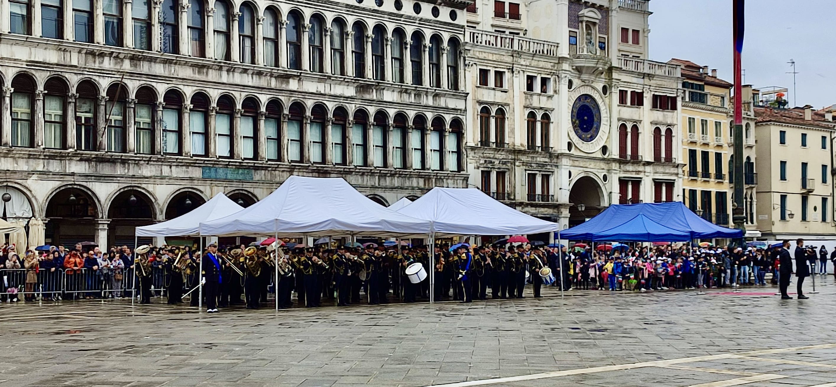In Piazza San Marco anche alcune classi del Convitto Foscarini (3A e 3B elementare, 3A media). Un’insegnante spiega: “Volevamo esserci nel giorno del giuramento solenne degli allievi. Abbiamo chiesto alla Marina di essere presenti oggi perché stiamo facendo un progetto di educazione civica sui giuramenti. Ci hanno dato una risposta positiva e uno spazio in Piazza. Siamo riusciti a vedere da vicino il Presidente della Repubblica Italiana. Li ringraziamo”.