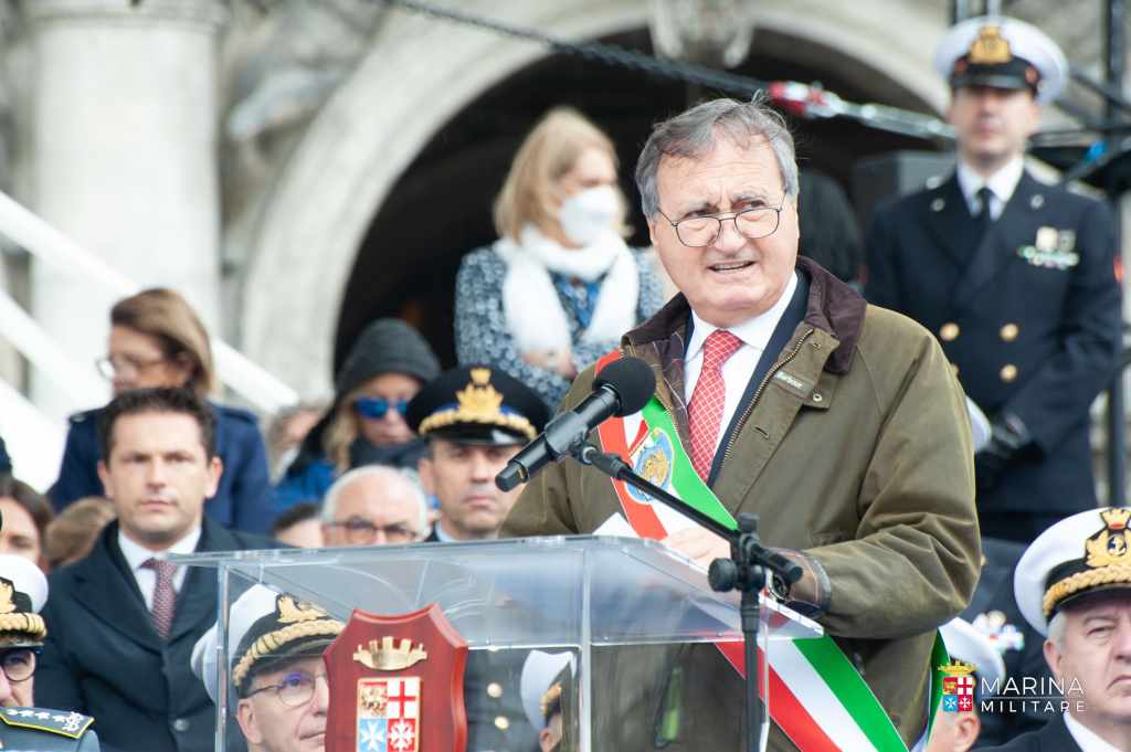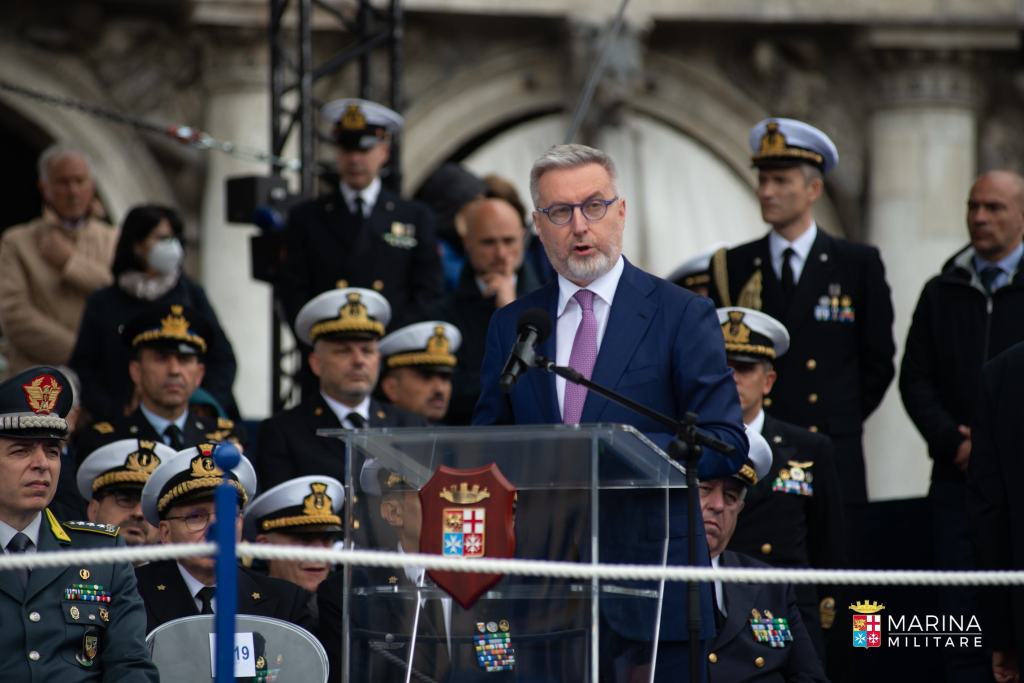 Per Voi giovani Allievi è un privilegio affrontare il percorso formativo in questa Città, simbolo della marineria italiana. L’Italia è un Paese di mare: a dirlo sono la geografia e la storia. L’anima del Paese è un’anima mediterranea, in cui riecheggiano il “Mare Nostrum”. L’Italia è un Paese di dialogo, di apertura, di scoperta, di onde da solcare con coraggio. La vocazione alla pace dell’Italia si coniuga a quella per la democrazia. Pace e democrazia sono valori fratelli: perché solo la libertà dei popoli garantisce, nel lungo periodo, una pace stabile e duratura. Abbiate sempre rispetto del blu e del bianco che indossate: sono colori d’avventura, di capacità, di dignità, di fatica, di abnegazione. Sono i colori della Marina Militare Italiana. Non dimenticatelo mai.