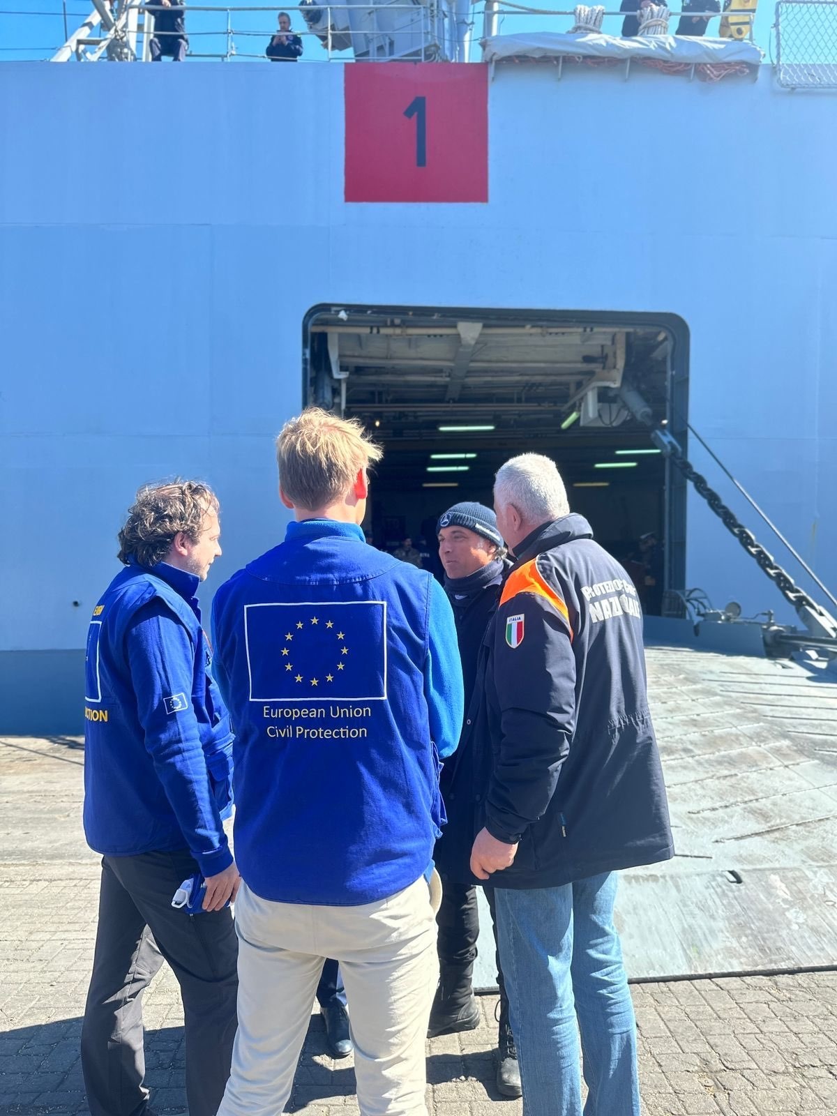 Al porto di Beirut erano presenti l’Ambasciatore italiano in Siria Massimiliano D’Antuono, Luigi Pandolfi capo delle operazioni degli aiuti umanitari UE in Siria con Simone Licomati e Anouk Delafortrie e responsabili della Protezione civile nazionale, Presidenza del Consiglio dei Ministri. Per il Paese siriano hanno seguito le operazioni personale della Syrian Arab Red Crescent & Red Cross.