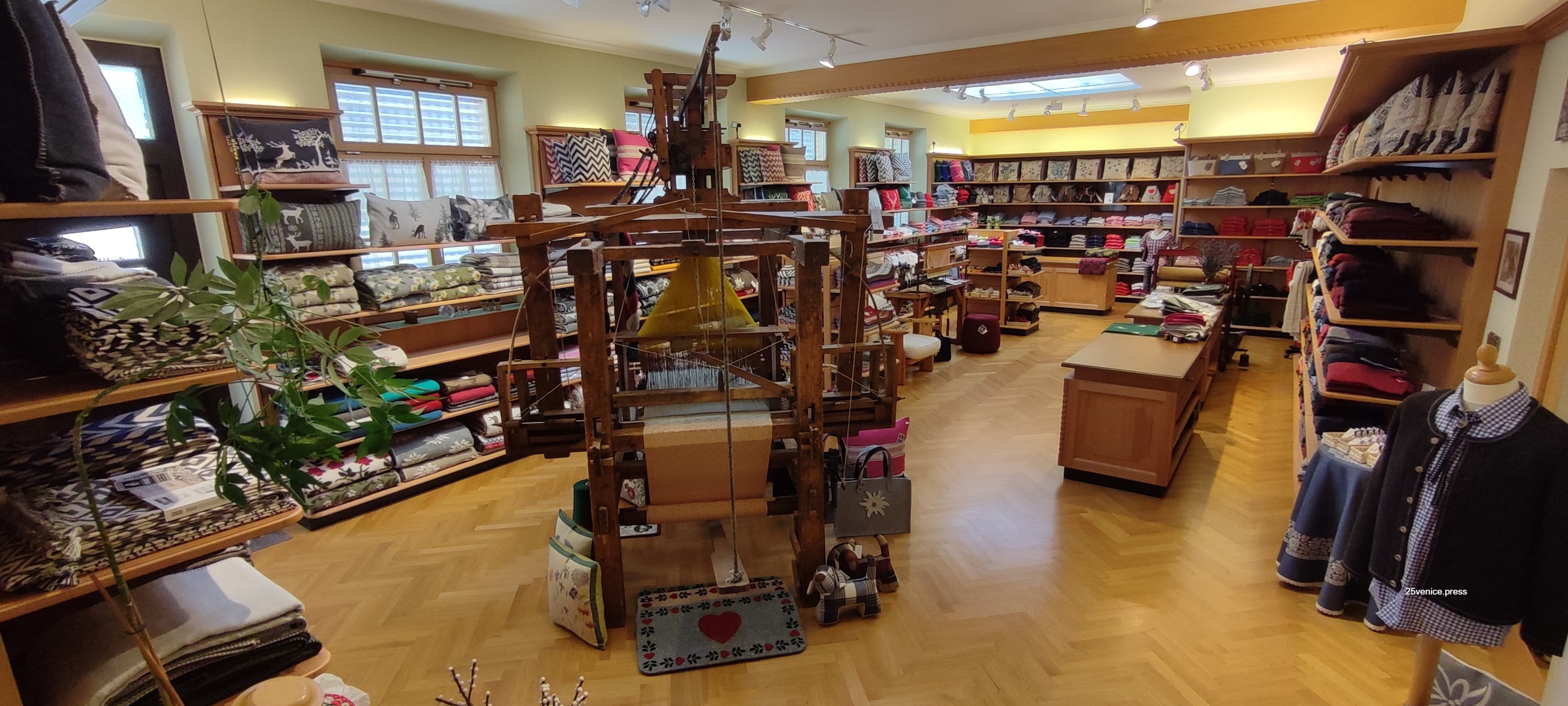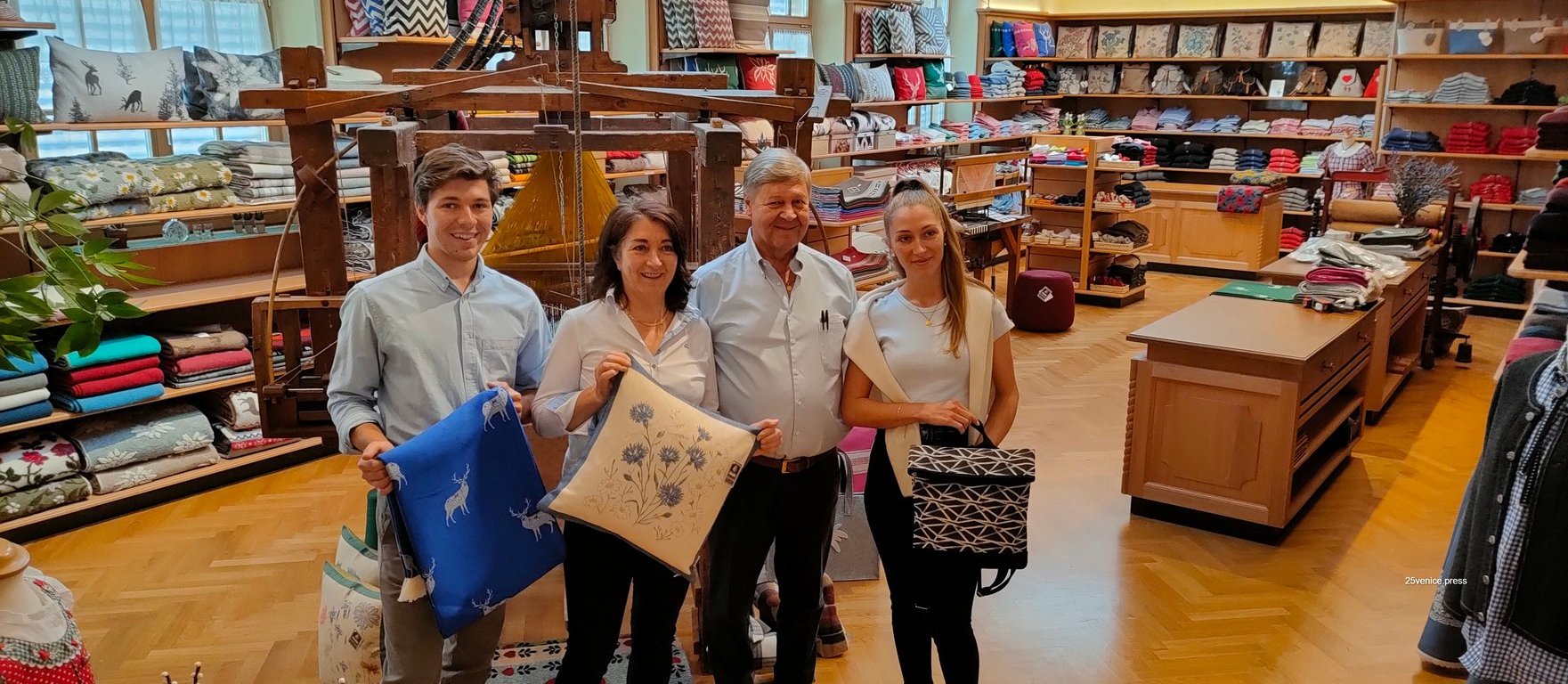 La famiglia Franz ha un primato. Sono tessitori da generazioni. Il primo fu Josef. L’antenato comincia a tessere nel 1776 presso la città di Warnsdorf nella Germania dei Sudeti. Il territorio che ora appartiene alla Repubblica Ceca e comprende la Boemia aveva una lunga tradizione di tessiture. Warnsdorf era considerato il centro più importante. Anche Swarovski proviene da quella città. Ora l’azienda di tessitura artistica Franz, nel cuore di Dolomiti, ha due negozi in via Michael Pachner, 12 dipendenti e fa spedizioni in tutto il mondo. L’80% dei clienti sono italiani (i veneziani sono tra i più affezionati), seguono gli austriaci e i tedeschi.