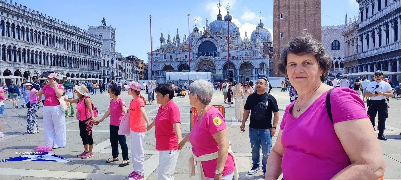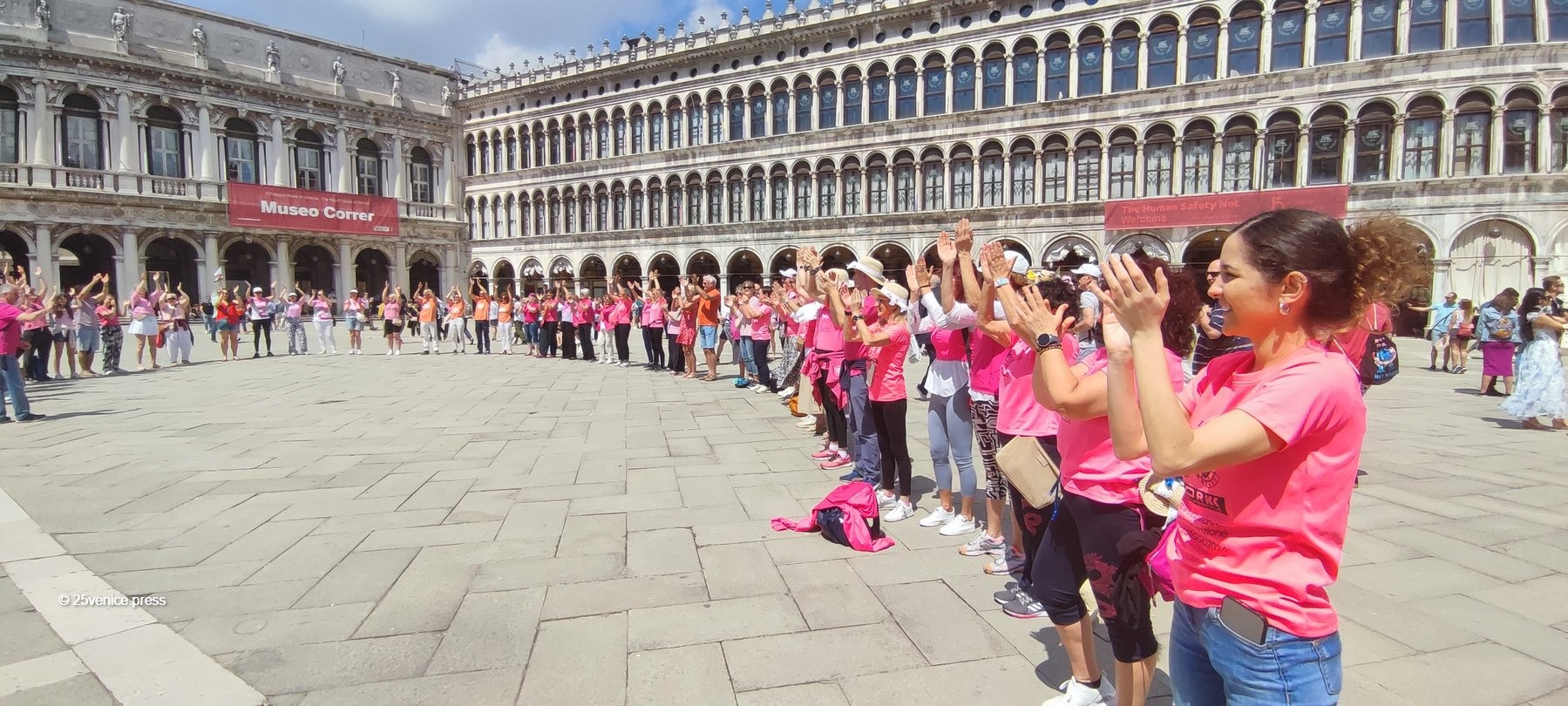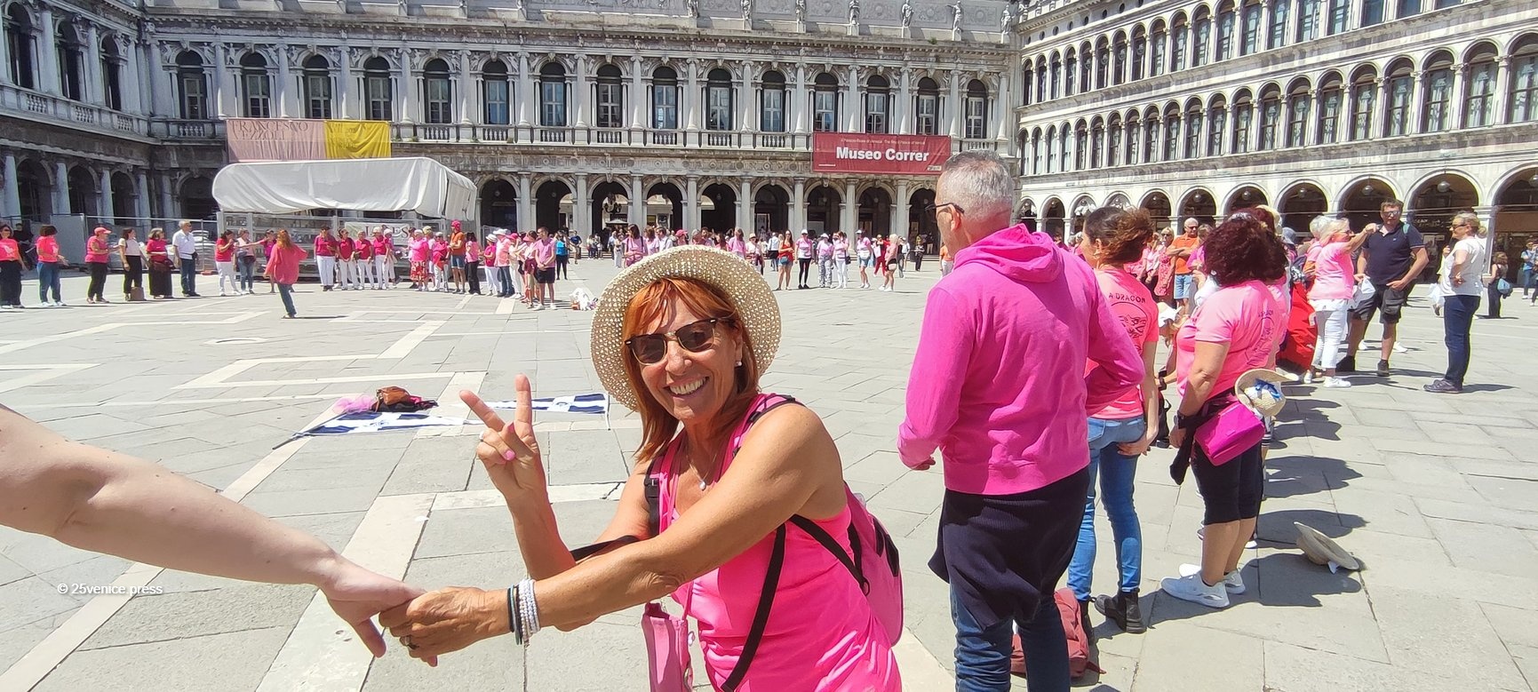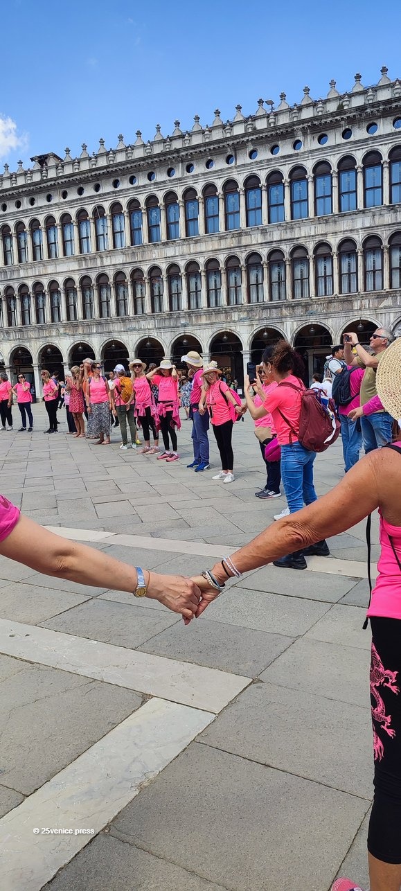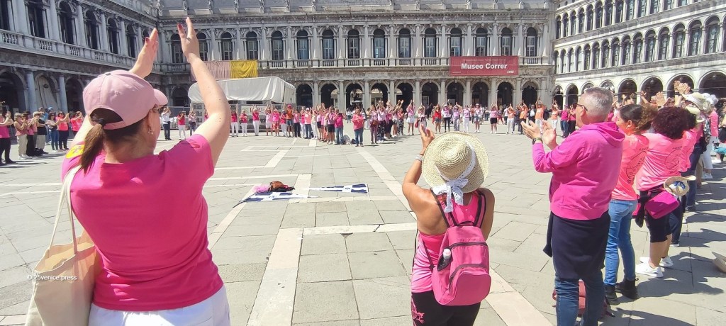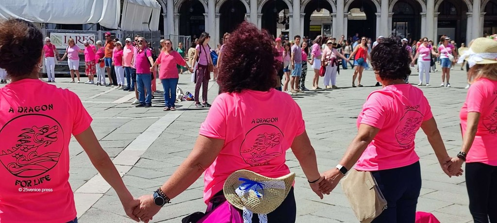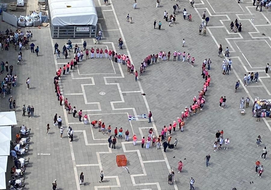 Fondatrice e presidente dell’associazione PhĂ©nix & Dragons, Carole da nove anni il giorno antecedente alla manifestazione veneziana promuove anche l’evento del “cuore rosa umano” in Piazza San Marco. “Per fare un omaggio alla solidarietĂ tra donne e all’amore verso Venezia. Anche la cittĂ conosce ferite ma con la bellezza ha superato le difficoltĂ come tutte noi”, sottolinea Carole. La donna ha immagini nitide di Venezia fin da quand’era bimba. Aggiunge: “Questa idea del cuore parte da una storia d’amore verso mia nonna Emi Schiavina. Ogni fine settimana mi portava sempre in Piazza San Marco. Ho pensato di realizzare qui un grande cuore umano così dal cielo potrebbe vedermi”.