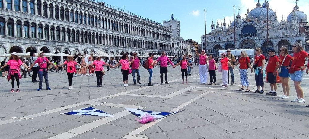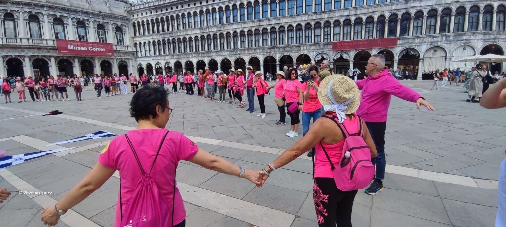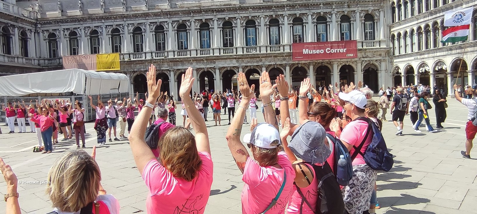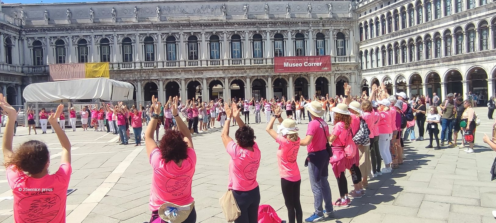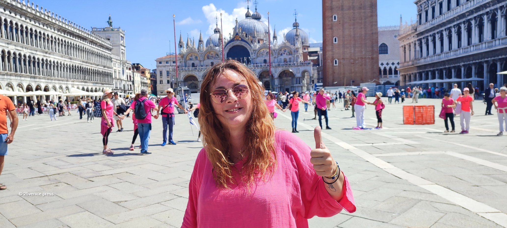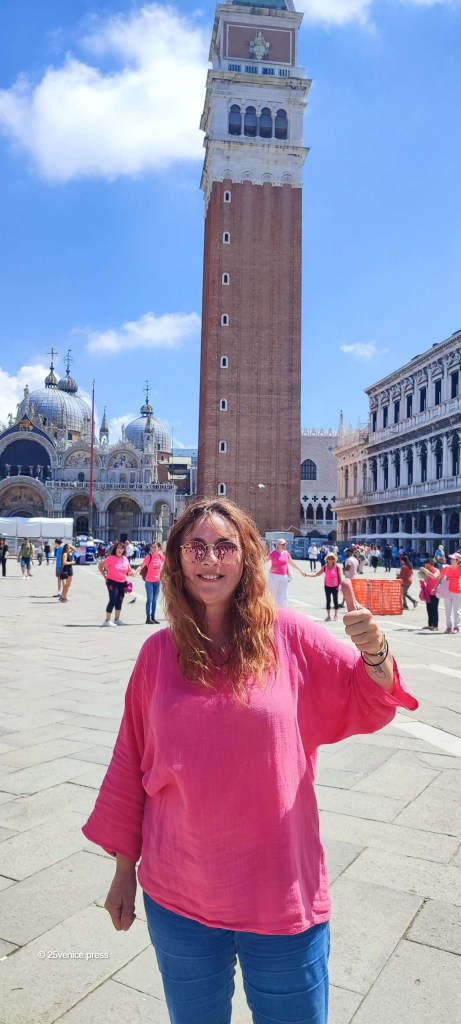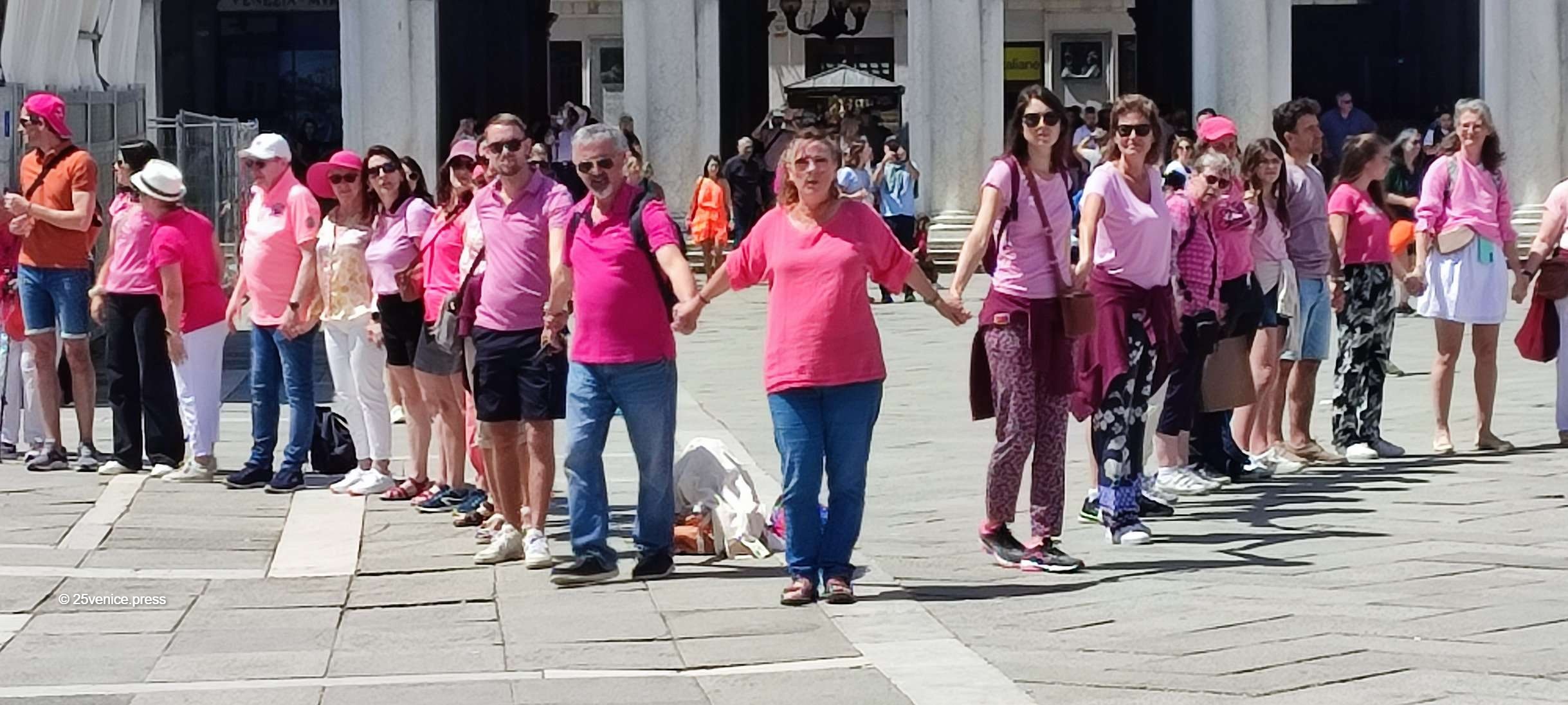 Fondatrice e presidente dell’associazione PhĂ©nix & Dragons, Carole da nove anni il giorno antecedente alla manifestazione veneziana promuove anche l’evento del “cuore rosa umano” in Piazza San Marco. “Per fare un omaggio alla solidarietĂ tra donne e all’amore verso Venezia. Anche la cittĂ conosce ferite ma con la bellezza ha superato le difficoltĂ come tutte noi”, sottolinea Carole. La donna ha immagini nitide di Venezia fin da quand’era bimba. Aggiunge: “Questa idea del cuore parte da una storia d’amore verso mia nonna Emi Schiavina. Ogni fine settimana mi portava sempre in Piazza San Marco. Ho pensato di realizzare qui un grande cuore umano così dal cielo potrebbe vedermi”.