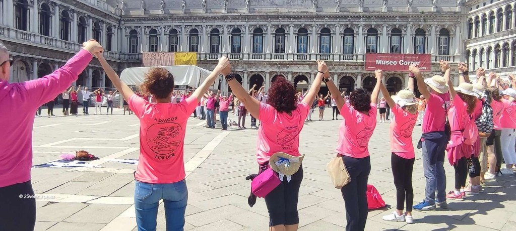 Un enorme cuore rosa in Piazza San Marco per esprimere la grande solidarietĂ tra donne operate al seno e lo smisurato amore per Venezia. Sono i due sentimenti che legano Carole, parigina con nonna veneziana, alla laguna. Dal 2016 Carole in occasione della Vogalonga – regata di imbarcazioni a remi non competitiva – organizza il “Dragon Ladies de Paris” rivolto a donne francesi. Un segno di speranza per il mondo femminile.