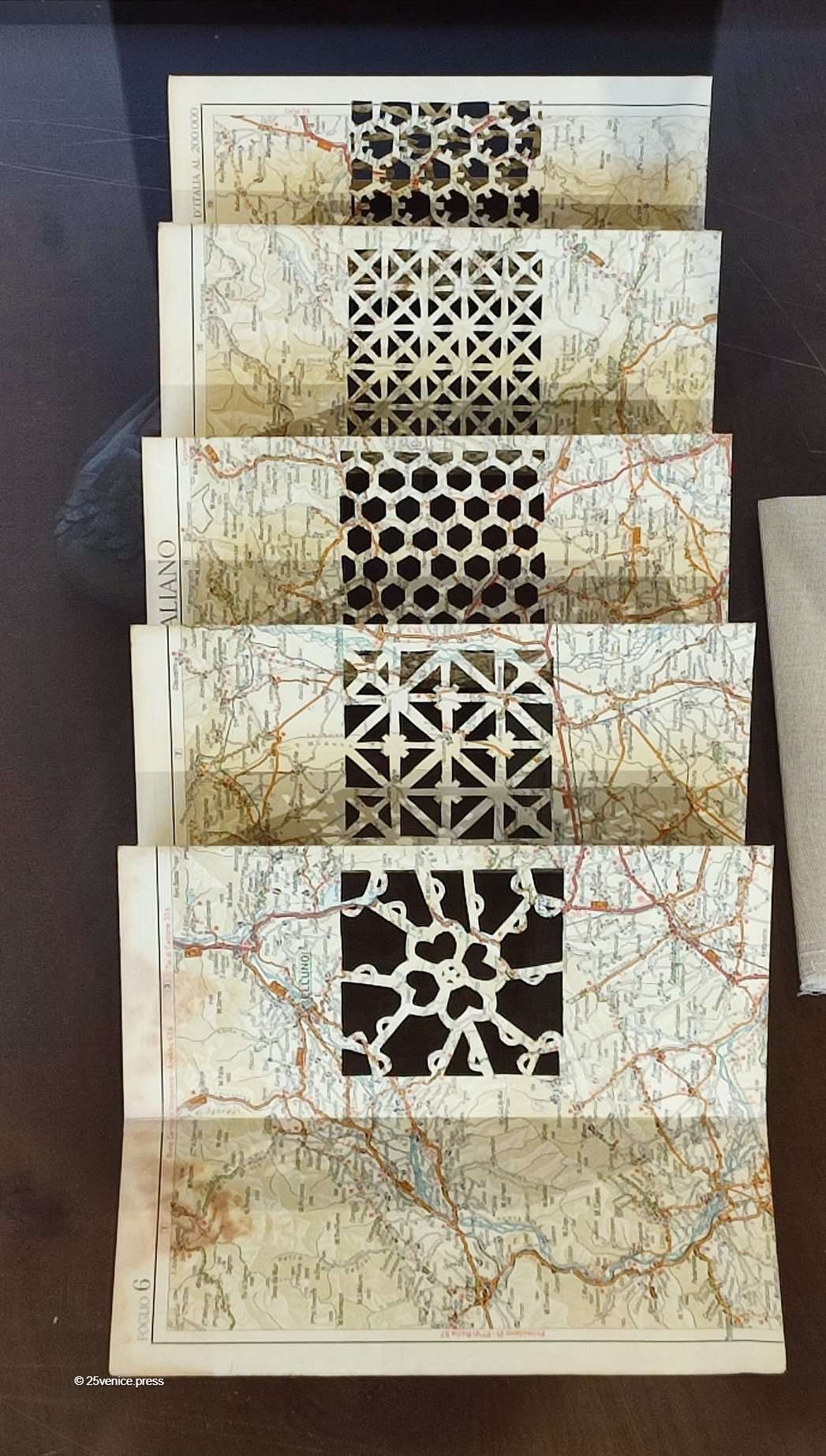 “Oggi è il giorno dei sogni. Crediamo nel futuro del merletto”, hanno detto felici le due artiste inglesi Mandy Bonnell, classe 1957, e Deirdre Kelly, classe 1962. Le loro speciali opere sono incantevoli trafori ritagliati su carte pregiate e mappe geografiche che utilizzano il linguaggio estetico del merletto trasformandosi in ventaglio, scarpette, cuffiette, colletti. Sono anche carte in rilievo passate e ripassate sotto una macchina di feltro. L’effetto è trasparenza, bellezza, splendore.