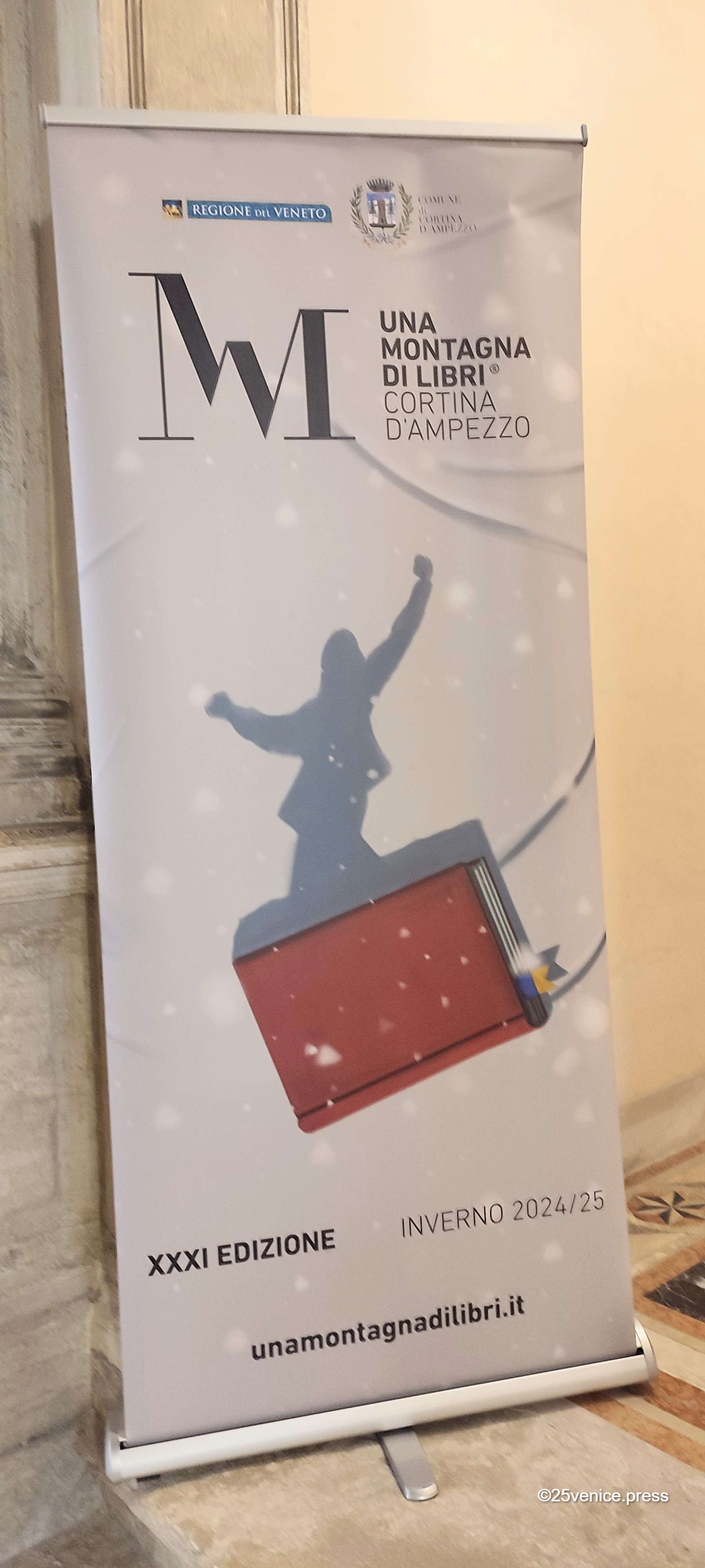 L’immagine presentata mercoledì 27 novembre a Palazzo Labia, Venezia, e illustrata da Andrea Bozzo introduce la 31esima edizione della festa internazionale della letteratura protagonista della Regina delle Dolomiti. Una Montagna di Libri che dal 2009 raccoglie un pubblico annuale di 20mila presenze si prepara a portare a Cortina, dal 7 dicembre 2024 al 15 marzo 2025, un ricco programma tra narrativa, arti visive, scienza e montagna.