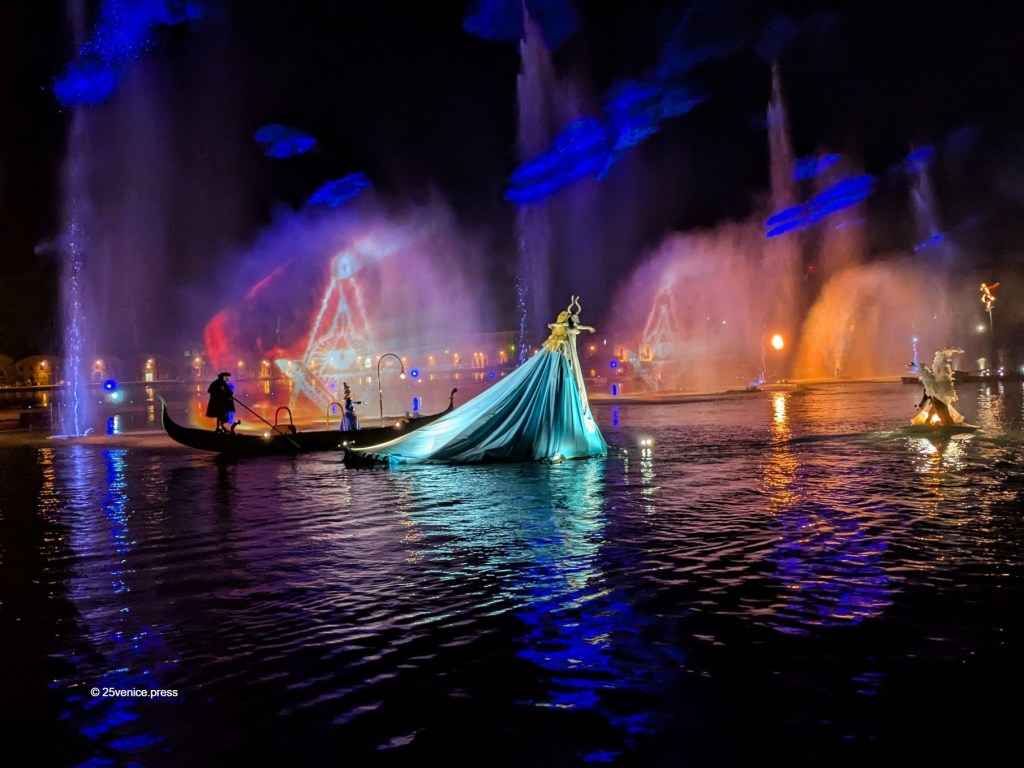 La vita di Casanova, scrittore, filosofo, letterato, diplomatico, violinista, spia, amico di re e Papi, è esibita nello specchio d’acqua tra spruzzi, fuochi, evanescenze, colori e tanta musica: l’arresto, il carcere, la fuga in Italia e in Europa all’insegna della libertà, verità e amore.