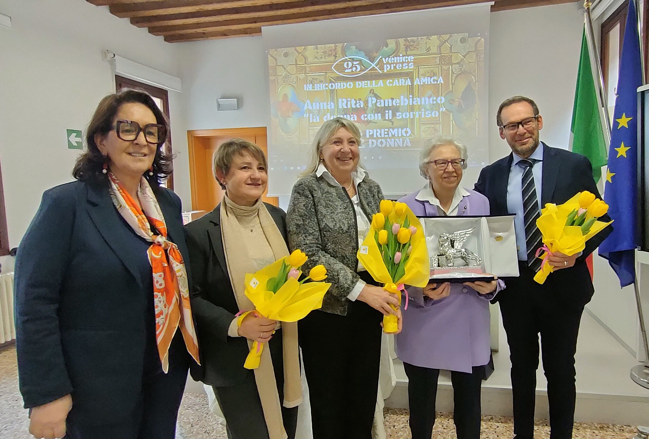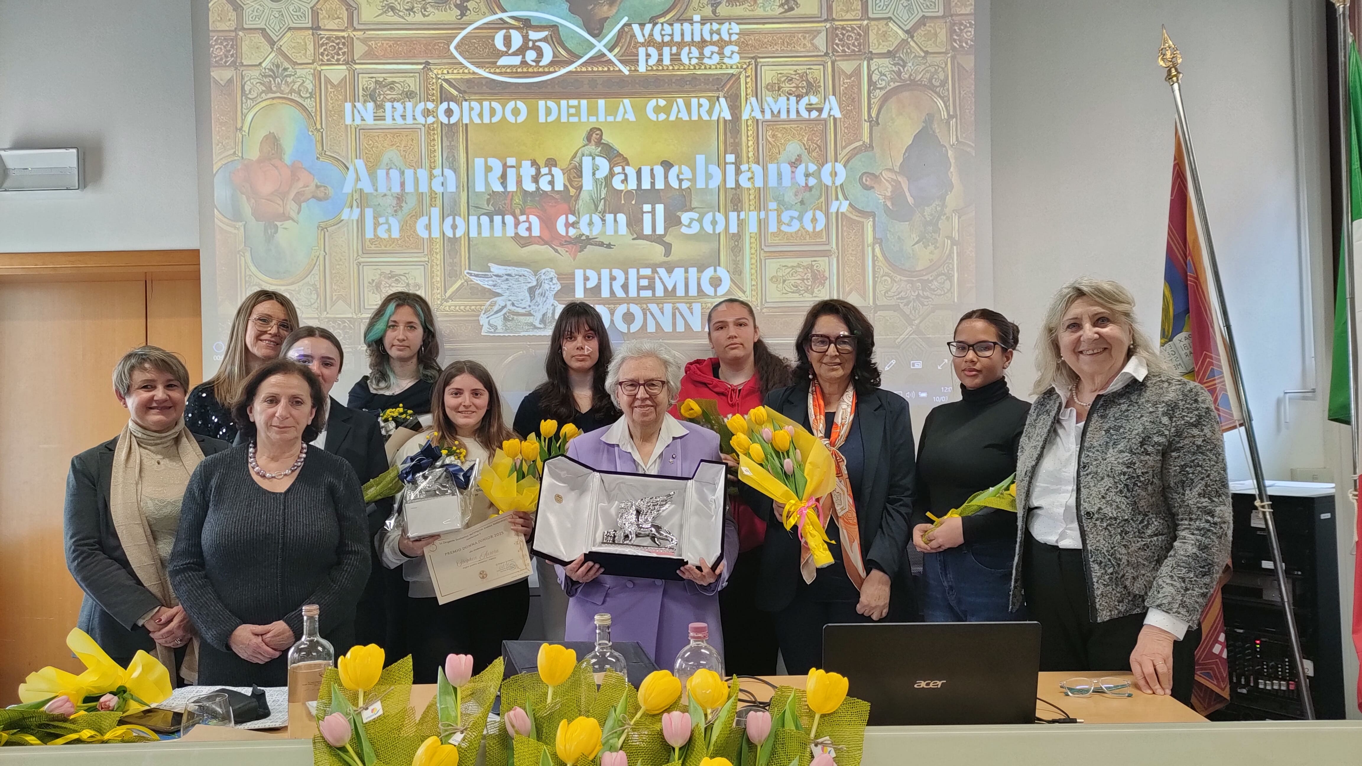 Questa mattina si è tenuta presso l’Istituto Alberghiero Barbarigo la cerimonia per il Premio Donna 2025 promosso dalla testata giornalistica 25venice.press e dedicato alla memoria di Anna Rita Panebianco, manager del Florian tragicamente scomparsa in laguna l’8 marzo.