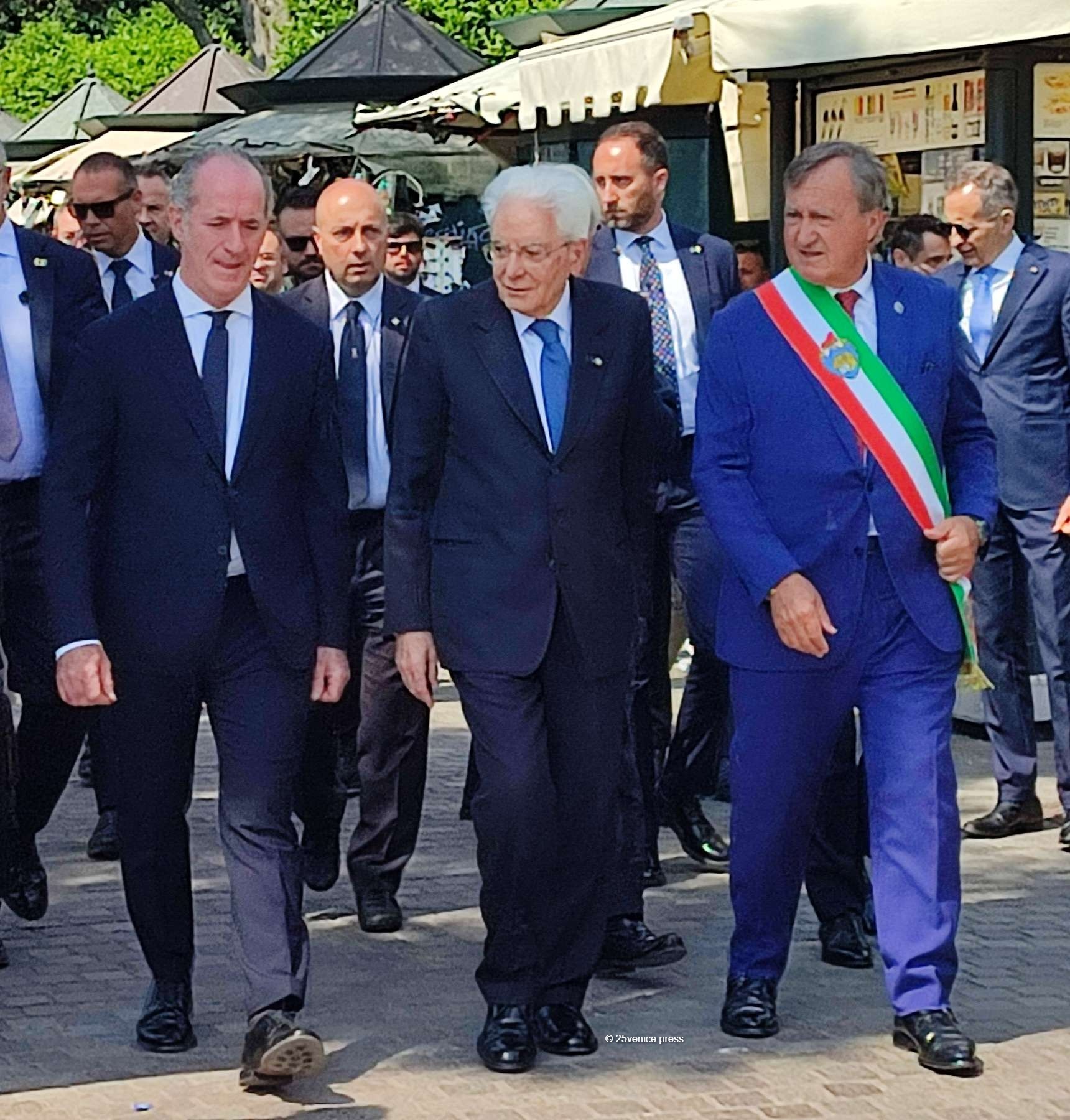 Poi un tratto a piedi accolto calorosamente tra gli applausi dei veneziani e dei turisti. “W il Presidente Mattarella”, ha esclamato con entusiasmo un gruppetto di italiani. La visita istituzionale si è trasformata, per un attimo, in una scena spontanea di affetto e sorpresa. L’episodio, breve ma significativo, ha suscitato un sorriso nel volto del Presidente, visibilmente colpito dalla genuinità del gesto che si è fermato un istante. Il Presidente si è poi diretto nel Salone dello Scrutinio di Palazzo Ducale.