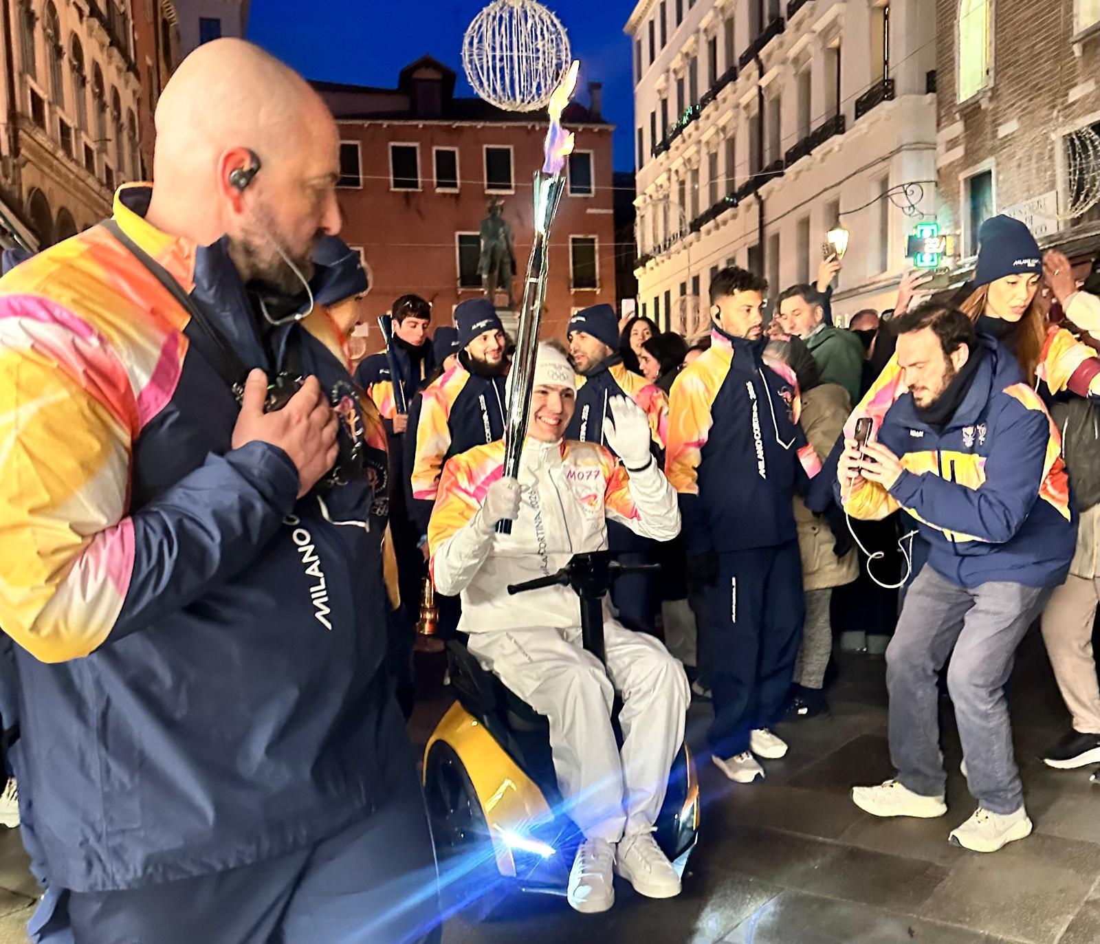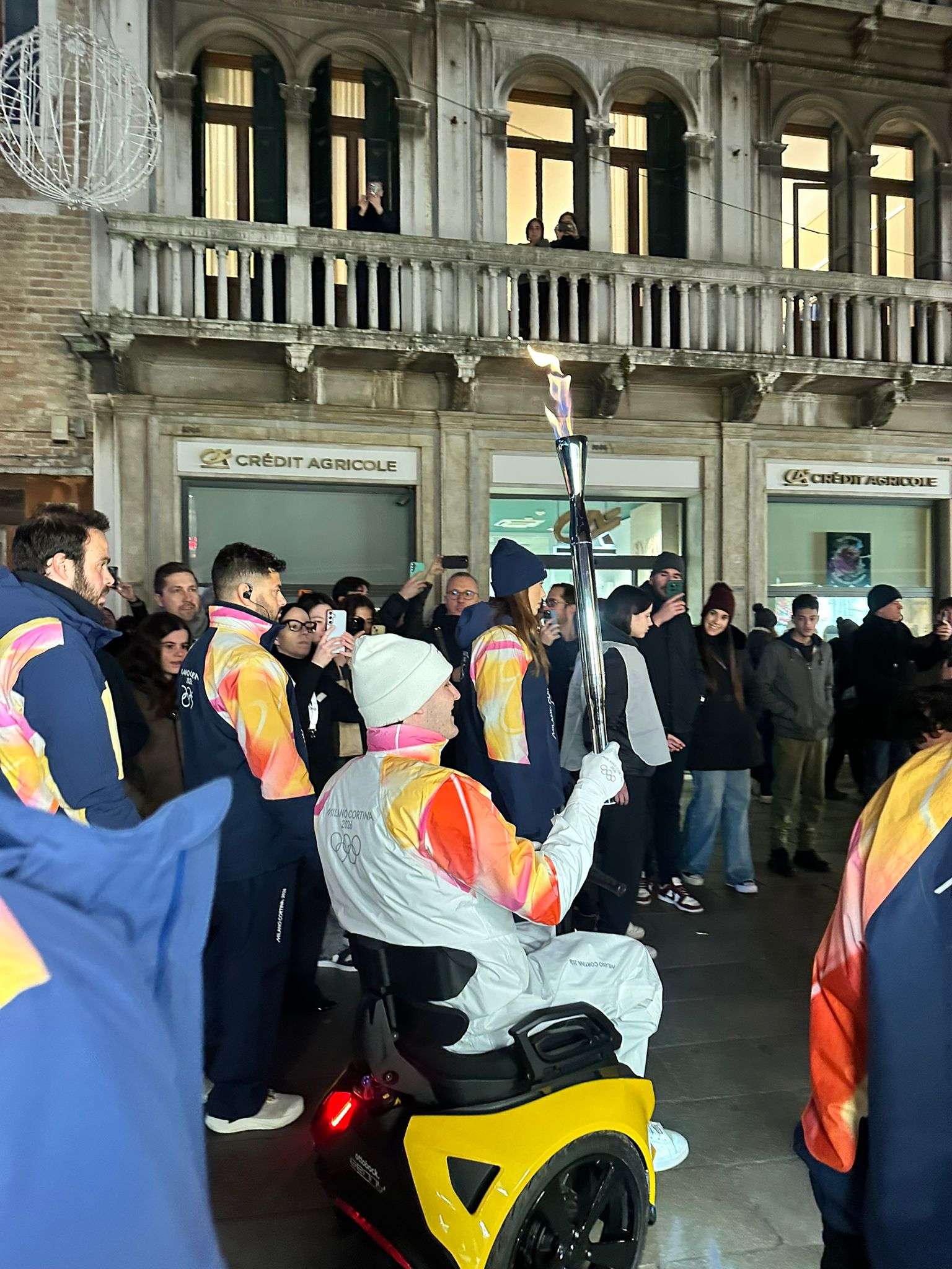 A compiere il gesto in Piazza San Marco intorno alle 19 è stata Sandra Truccolo, campionessa paralimpici che rappresentano una storia dello sport come riscatto, eccellenza e responsabilità sociale.