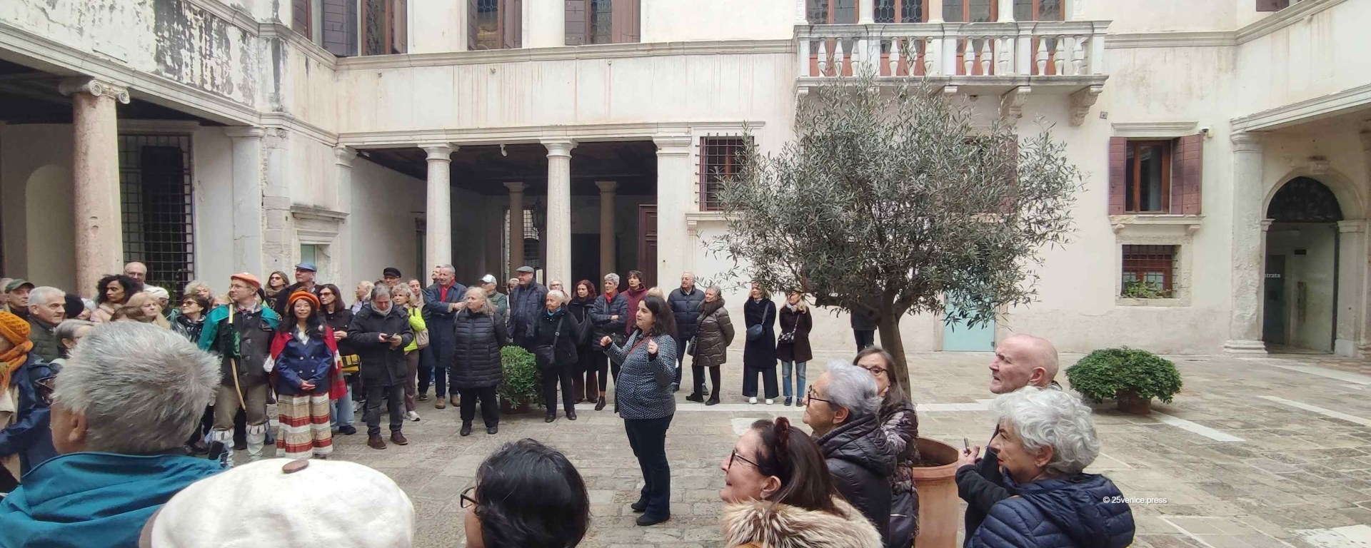 La presentazione al pubblico si è trasformata in una vera e propria passeggiata inaugurale. Il percorso è partito dal cortile del Museo di Palazzo Grimani per concludersi nel chiostro del Convento di San Francesco della Vigna, accompagnando i partecipanti in un itinerario tra storia luoghi e ricordi.